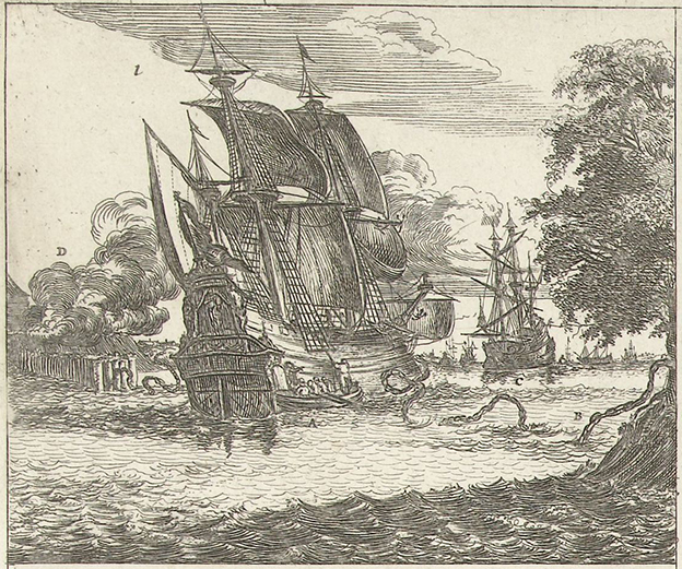 Scene from the Chatham raid by Romeyn de Hooghe, 1667 [Rijksmuseum Amsterdam]