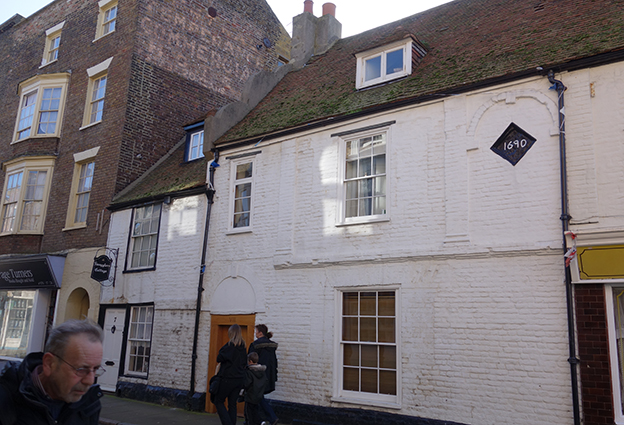 Richard Watts, the 17th-century notary at Deal who co-starred in an earlier post, probably saw this three-arched building go up in Margate where he formerly lived; the ground floor looks as if it was once an open arcade. Now it’s part of Margate’s excellent museum.