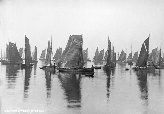 Here’s the Brixham fleet in about 1889, waiting for a breeze: tough old working boats looking very like a flock of butterflies.
