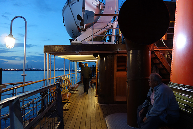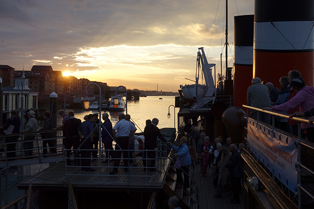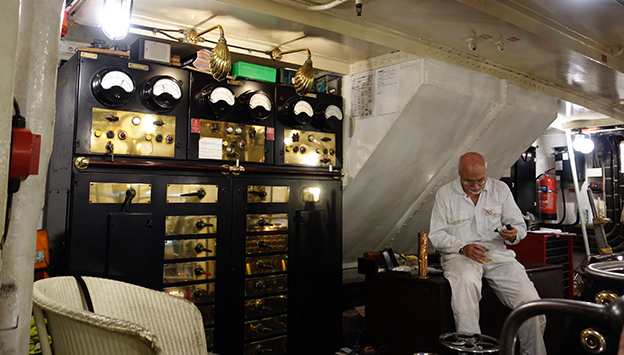 Waverley is the last of the world’s sea-going paddle steamers, completed in 1947 and now restored to full post-war self-confidence, with further improvements including classlessness. The ship has two bars, a dining saloon and a tea room, Lloyd Loom chairs, oilcloth on the tables, a very public engine room, a saltire on the mast – and a surprising turn of speed.