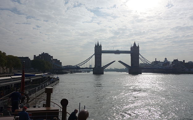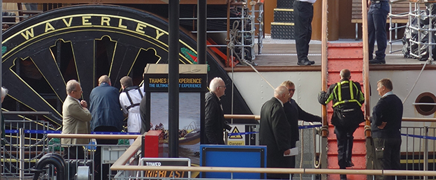 Here is the Clyde paddle steamer Waverley leaving Tower pier for an excursion to Southend last week, and owning the river.