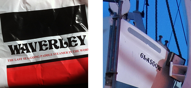 An earlier Waverley was built in 1899 for the North British Railway company, the owners of Waverley station in Edinburgh. That history may have prompted someone to use an Edwardian display typeface (Pretorian) as a lettering style for the present Waverley, which appears on publicity material and even on the sterns of the lifeboats. Perhaps the designer was just thinking about waves; but the typeface, which reappeared in the age of Letraset as an emblem of 1970s taste, grates now when seen against the careful restoration of this 1940s vessel. Who knows what Sir Walter Scott would make of it, who took the name from an ancient place in Surrey and made it famous. Romance is one thing, ham-gothic twiddles are something else altogether.
