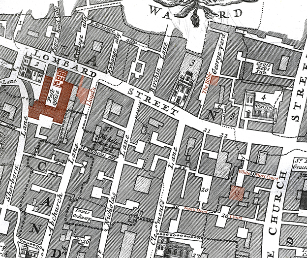 Surviving issues of Ships Arrived and Lloyd’s News carry only the imprint of Edward Lloyd as publisher. As for the unnamed printer, there are possibilities nearby. Leading off Lombard Street was an entry to the Quaker meeting house in White Hart Court, Gracechurch Street, and another to Three Kings Court which housed the central repository of Quaker books; across the road on the north side of Lombard Street there were Quaker businesses in George Yard. These were the places where Quaker booksellers had their shops; one of them at least was also a printer.